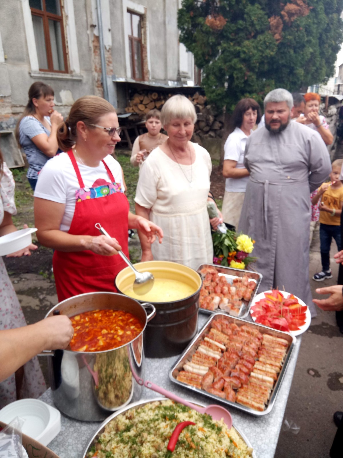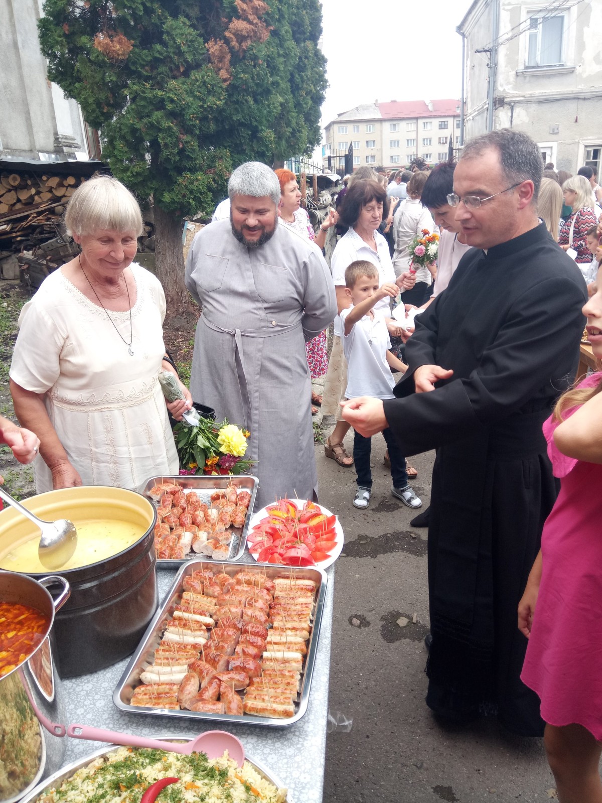 Po procesji wszyscy goście i parafianie zostali zaproszeni na okolicznościowy poczęstunek, który miał miejsce na przyklasztornym placu.