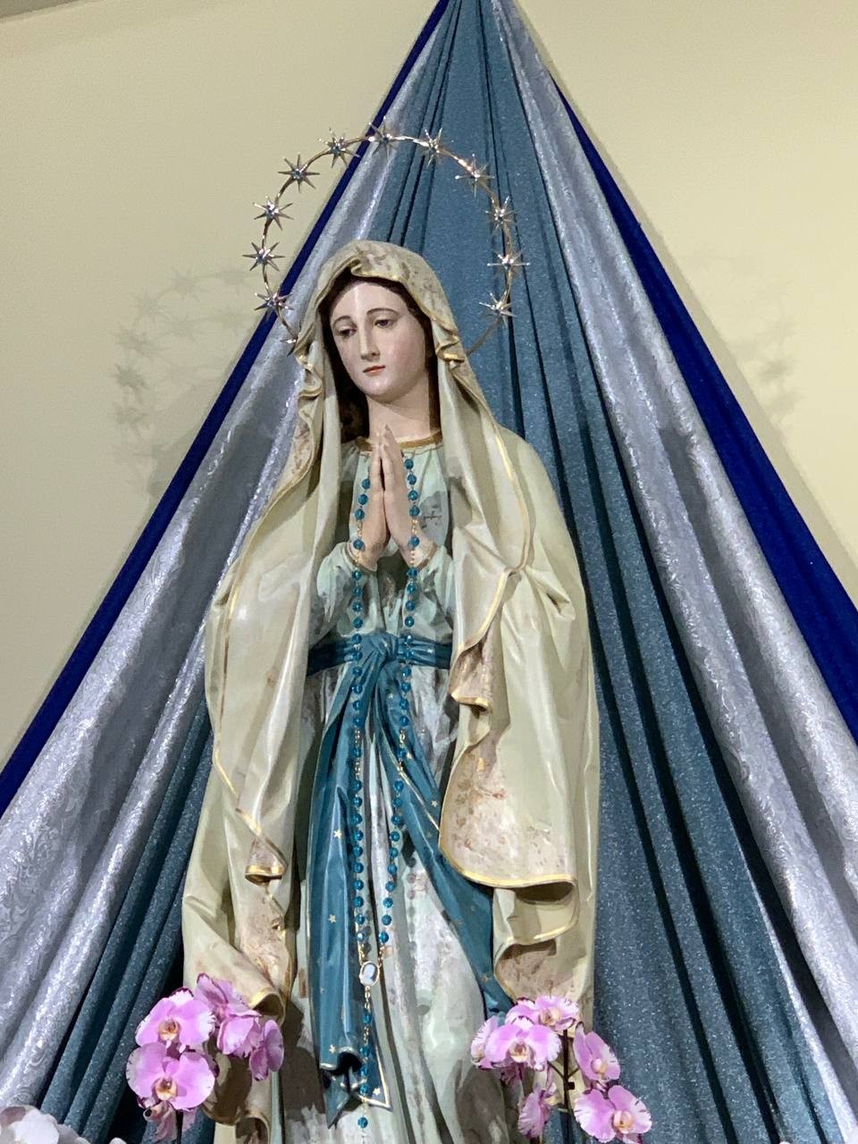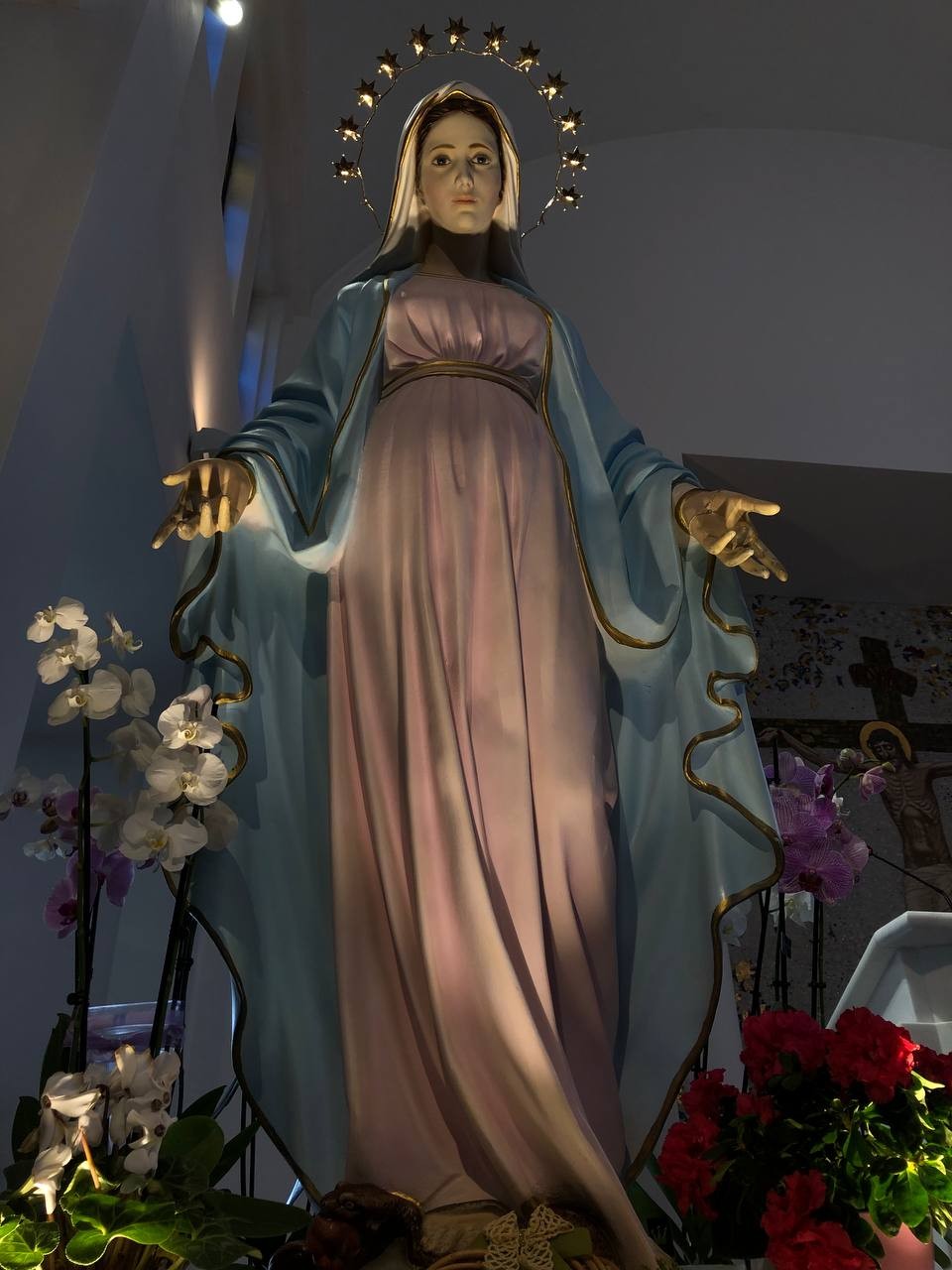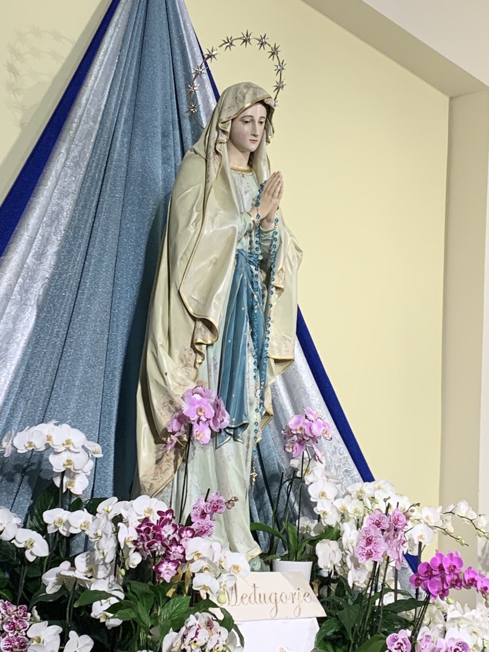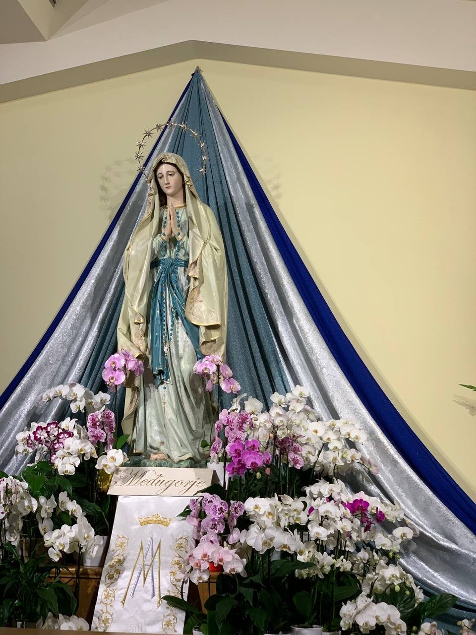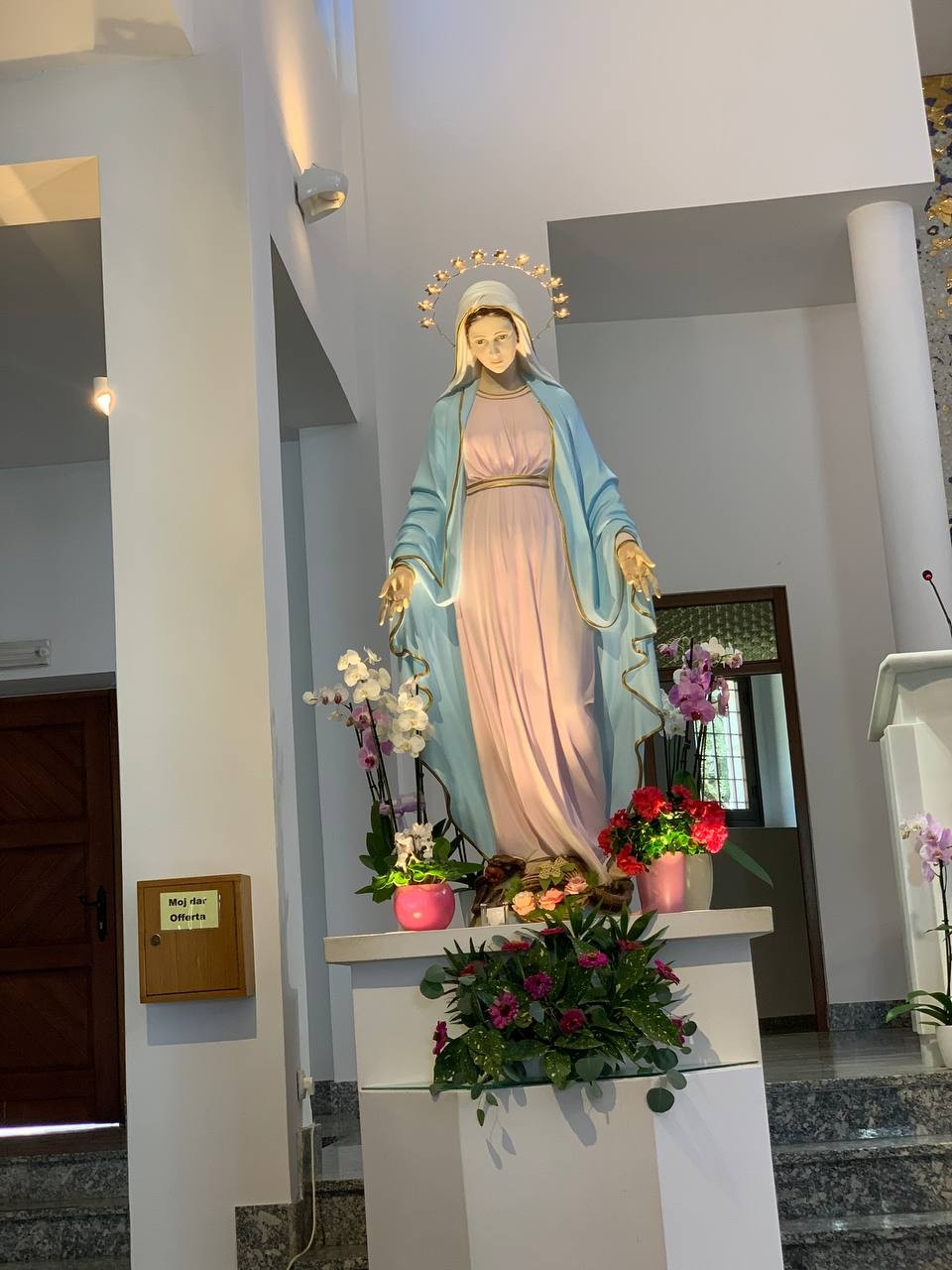 Po programie wieczornym najpierw pożegnaliśmy się z gospodarzami domu, w którym mieszkaliśmy, a następnie ostatni raz, na chwilkę, podjechaliśmy pod kościół parafialny, by pożegnać się z Królową Pokoju.