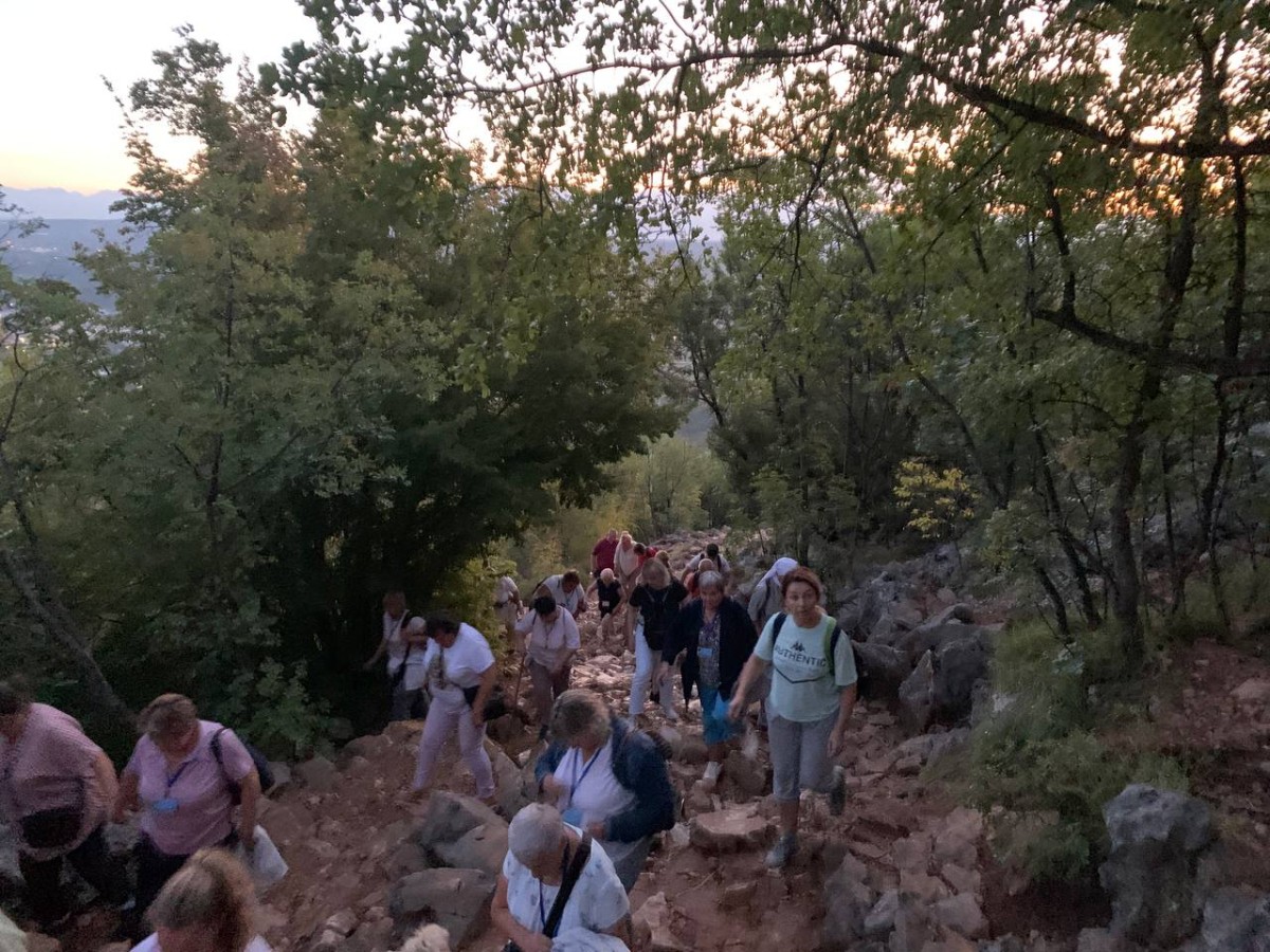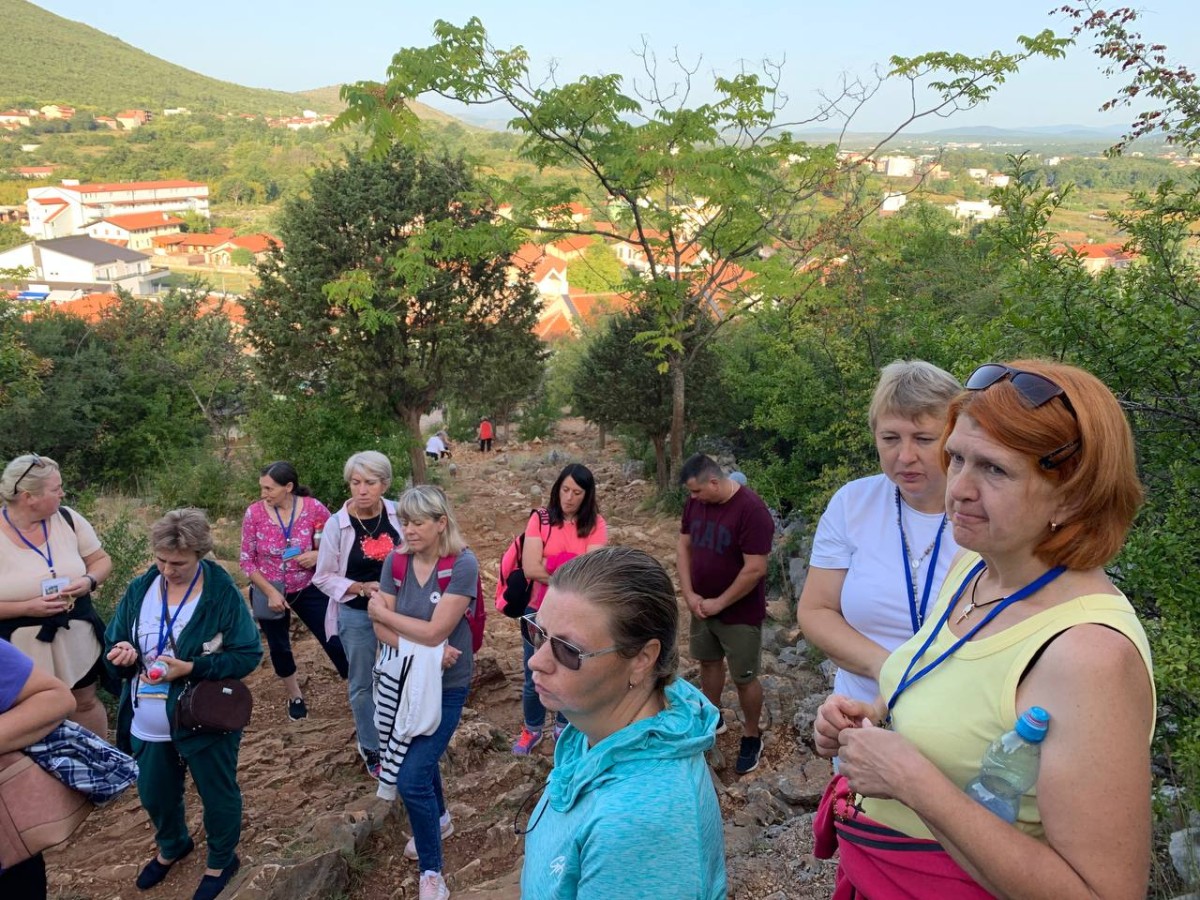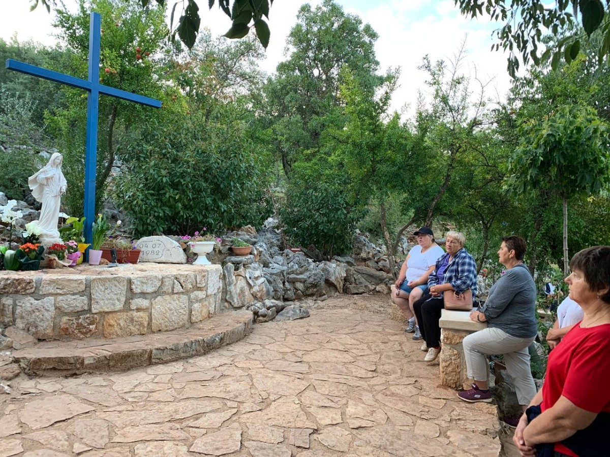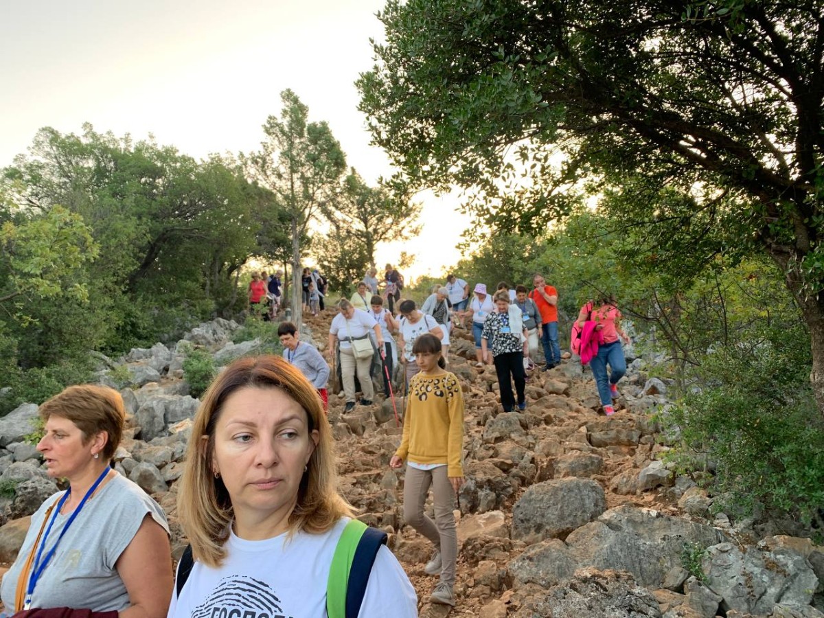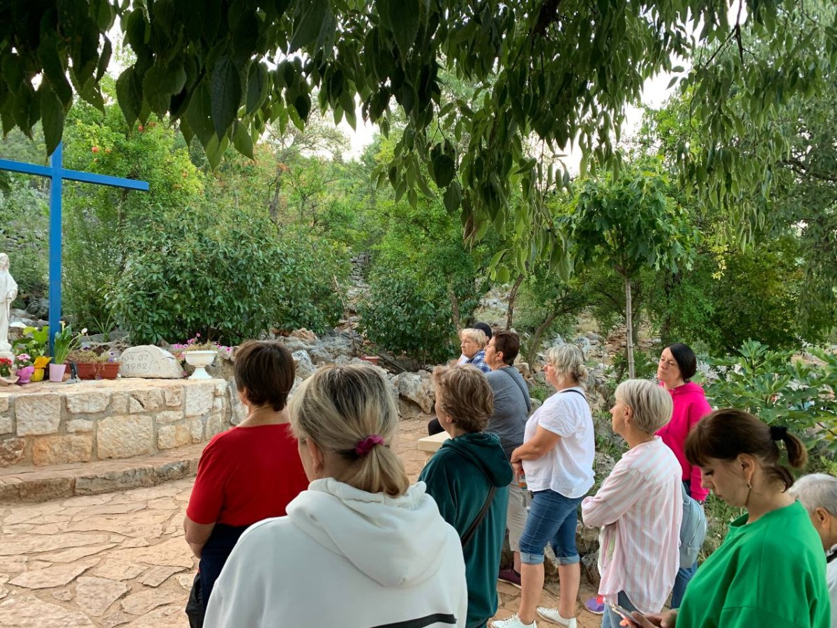 На спільну молитву святого Розарія ми пішли на Гору Обявлень (Подбрдо) у понеділок рано зранку. Після сніданку ми адоровали Ісуса в Оазі Миру, а потім мали зустріч у Спільноті Cenacolo, де дізналися про її історію та діяльність та послухали свідчення чоловіків, які борються зі своїми узалежненями. О 14:00 год. ми мали Святу Месу в Селі Матері ( це дім для покинутих і занедбаних дітей – діло отця Славка Барбарича). У другій половині дня мивзяли участь у вечірній програмі.