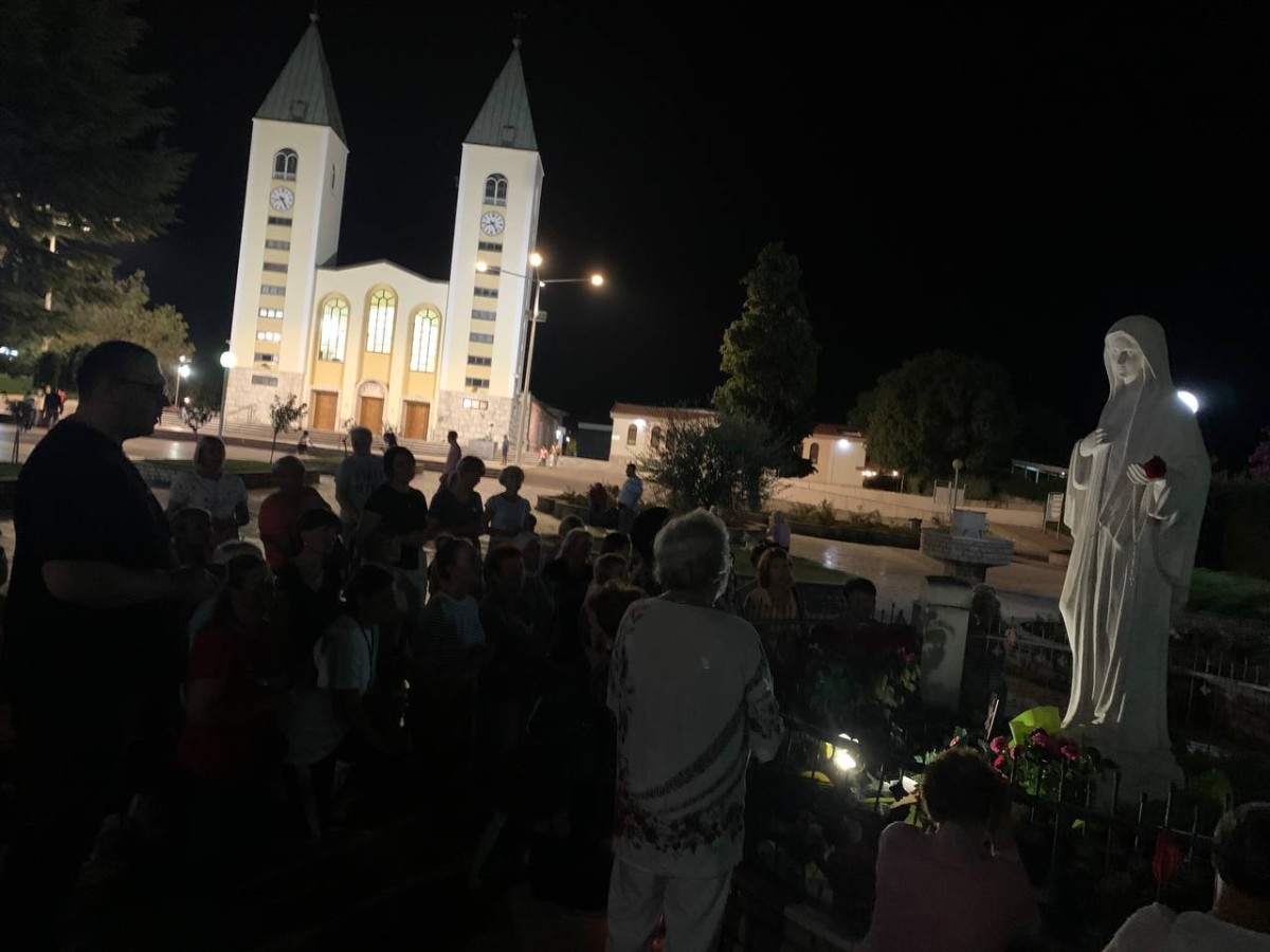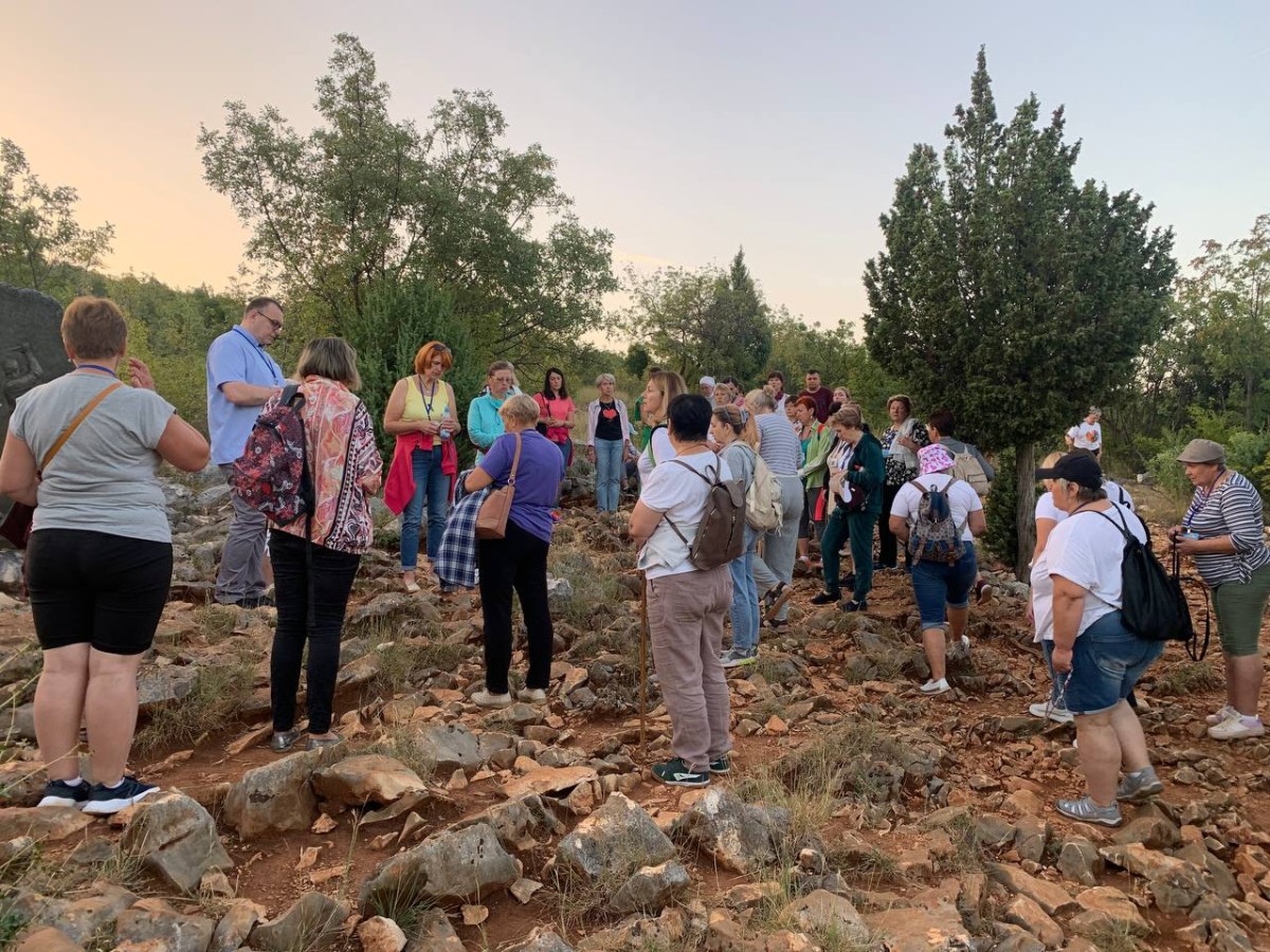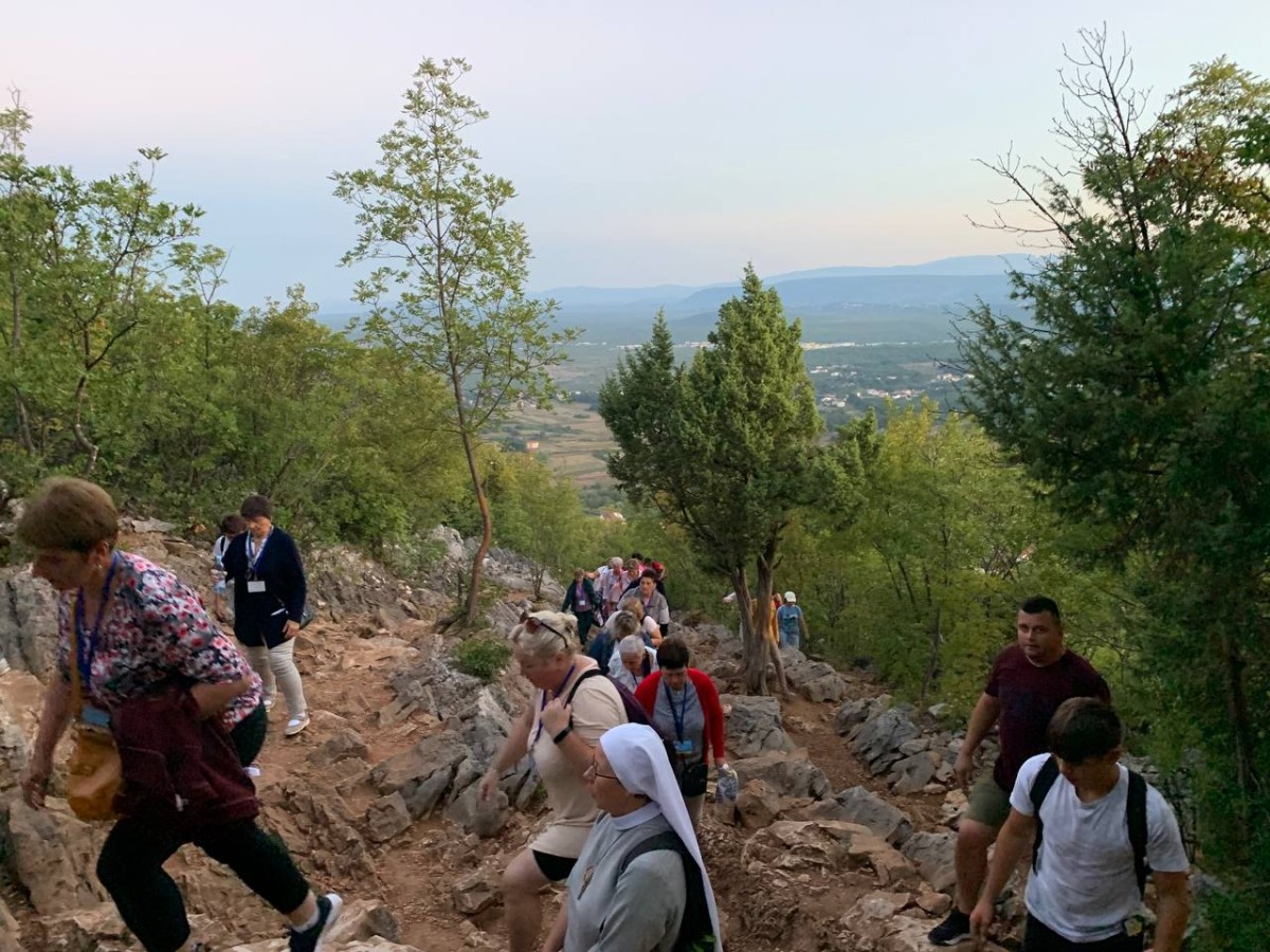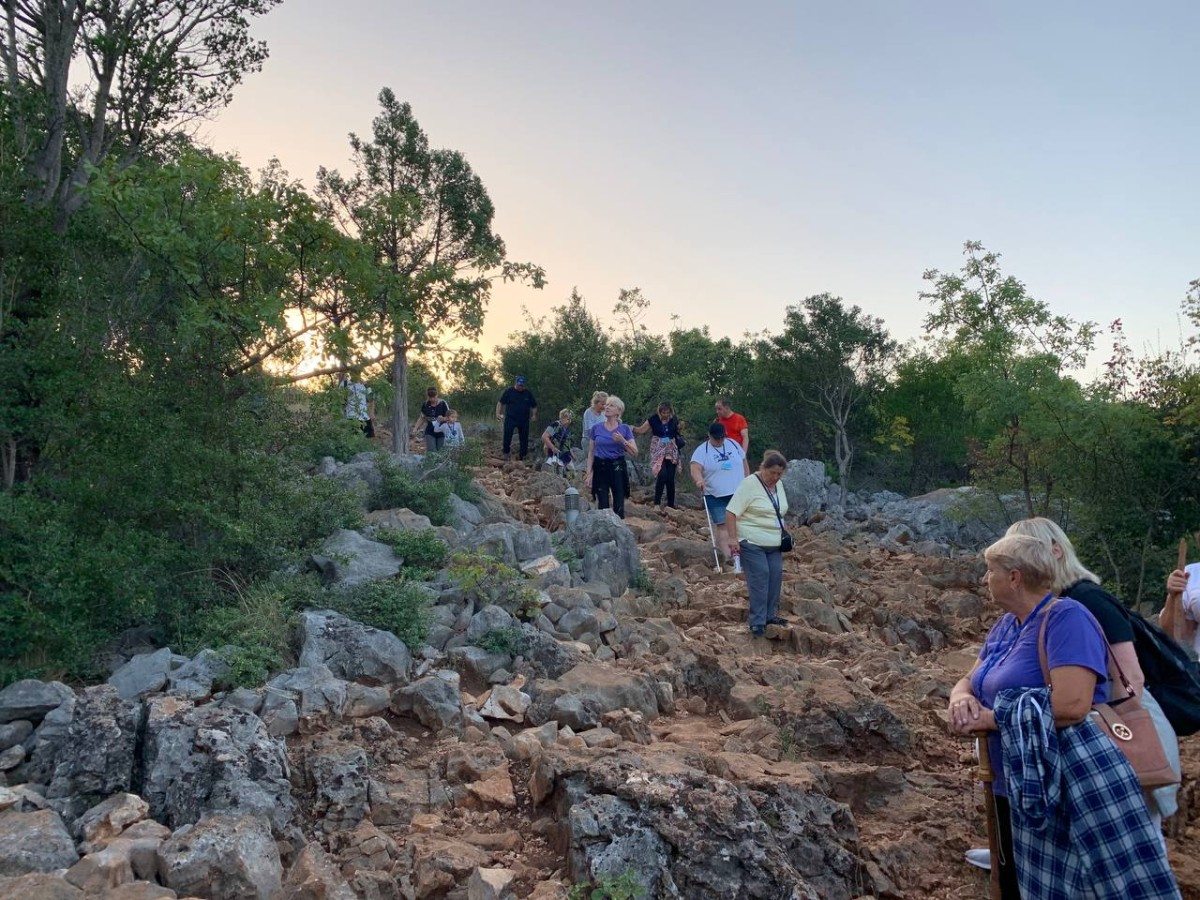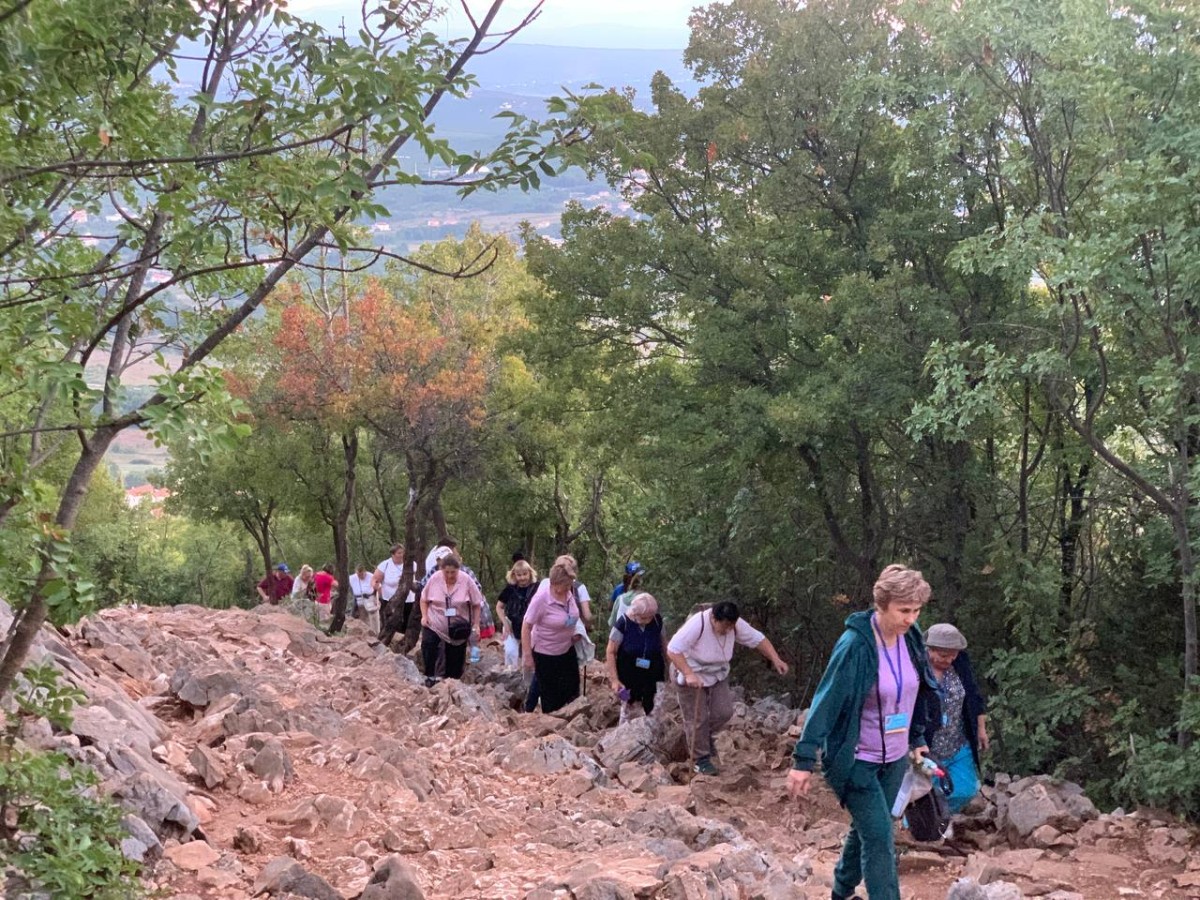 На спільну молитву святого Розарія ми пішли на Гору Обявлень (Подбрдо) у понеділок рано зранку. Після сніданку ми адоровали Ісуса в Оазі Миру, а потім мали зустріч у Спільноті Cenacolo, де дізналися про її історію та діяльність та послухали свідчення чоловіків, які борються зі своїми узалежненями. О 14:00 год. ми мали Святу Месу в Селі Матері ( це дім для покинутих і занедбаних дітей – діло отця Славка Барбарича). У другій половині дня мивзяли участь у вечірній програмі.