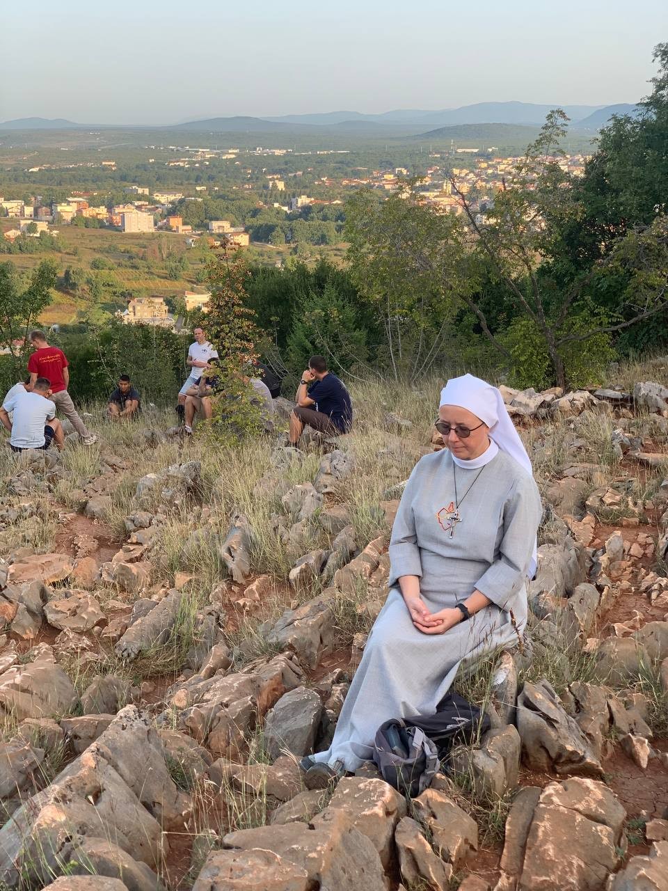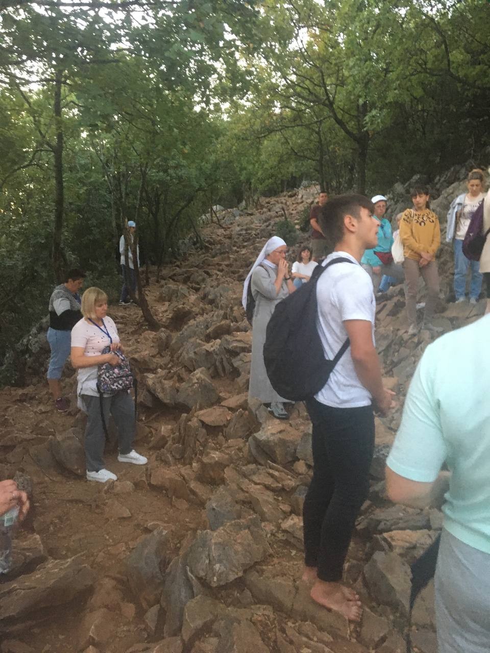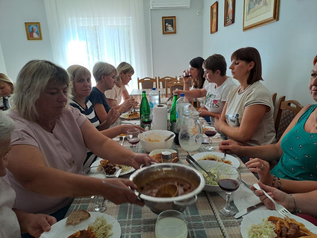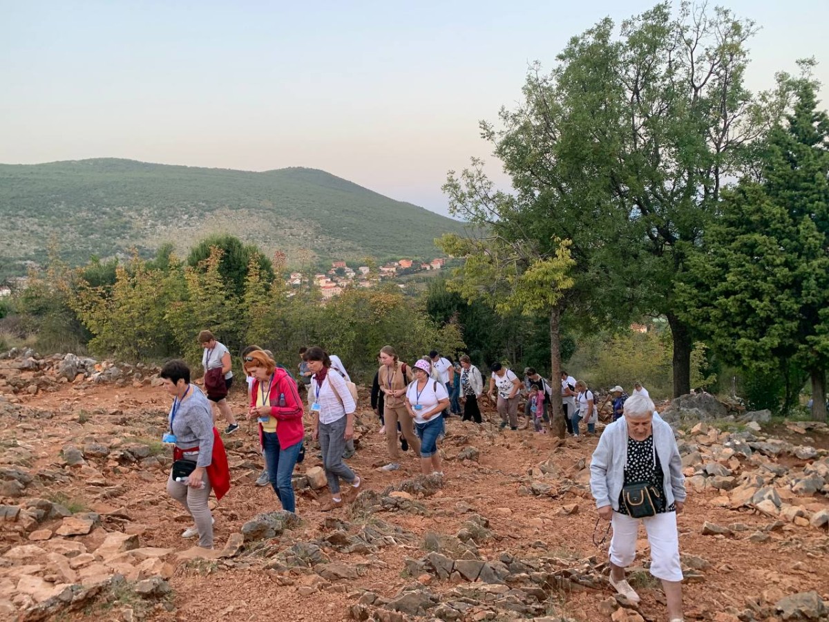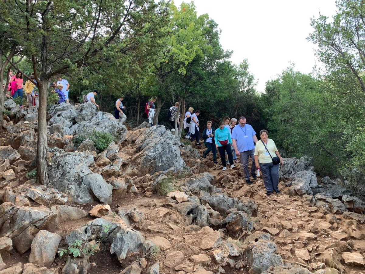 На спільну молитву святого Розарія ми пішли на Гору Обявлень (Подбрдо) у понеділок рано зранку. Після сніданку ми адоровали Ісуса в Оазі Миру, а потім мали зустріч у Спільноті Cenacolo, де дізналися про її історію та діяльність та послухали свідчення чоловіків, які борються зі своїми узалежненями. О 14:00 год. ми мали Святу Месу в Селі Матері ( це дім для покинутих і занедбаних дітей – діло отця Славка Барбарича). У другій половині дня мивзяли участь у вечірній програмі.