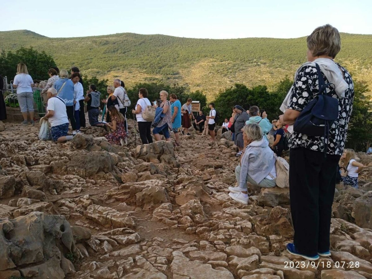 Na wspólną modlitwę różańcową na Górę Objawień (Podbrdo) udaliśmy się wcześnie rano w poniedziałek. Po śniadaniu adorowaliśmy Pana Jezusa w Oazie Pokoju, po czym mieliśmy spotkanie we Wspólnocie Cenacolo, gdzie poznaliśmy jej historię i działalność oraz wysłuchaliśmy świadectwo mężczyzn, którzy zmagają się ze swoimi uzależnieniami. O godz. 14.00 mieliśmy Mszę Świętą w Matczynej Wiosce (dom dla opuszczonych i zaniedbanych dzieci – dzieło o. Slavka Barbaricia). Po południu wzięliśmy udział w programie wieczornym. A w nocy prawie połowa pielgrzymów jeszcze raz udała się na Górę Krzyża, by modlić się w swoich intencjach.