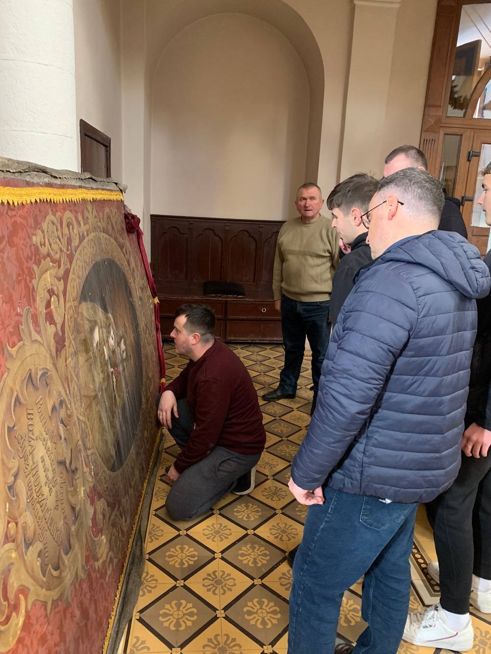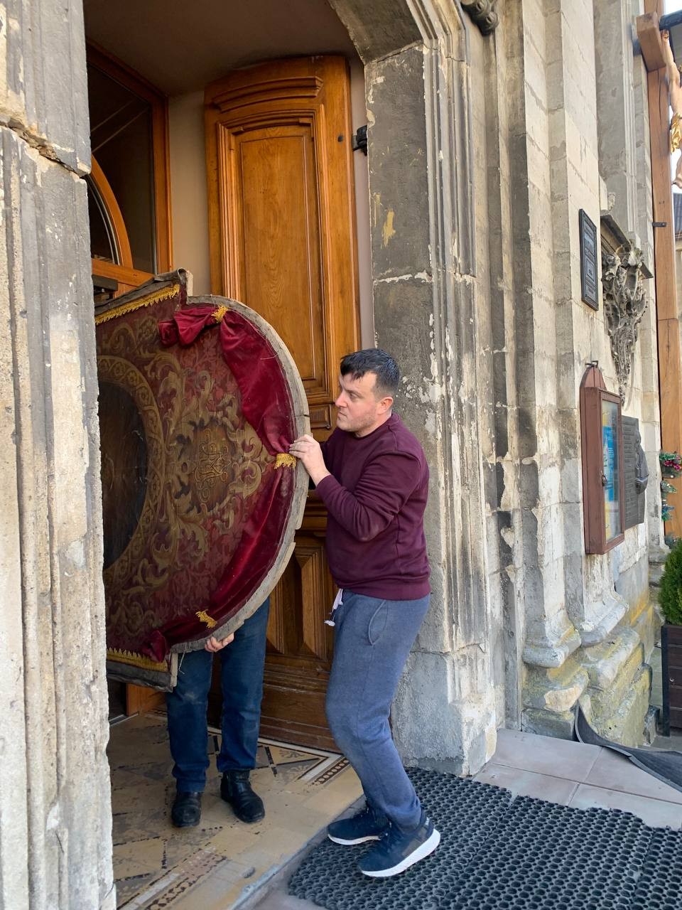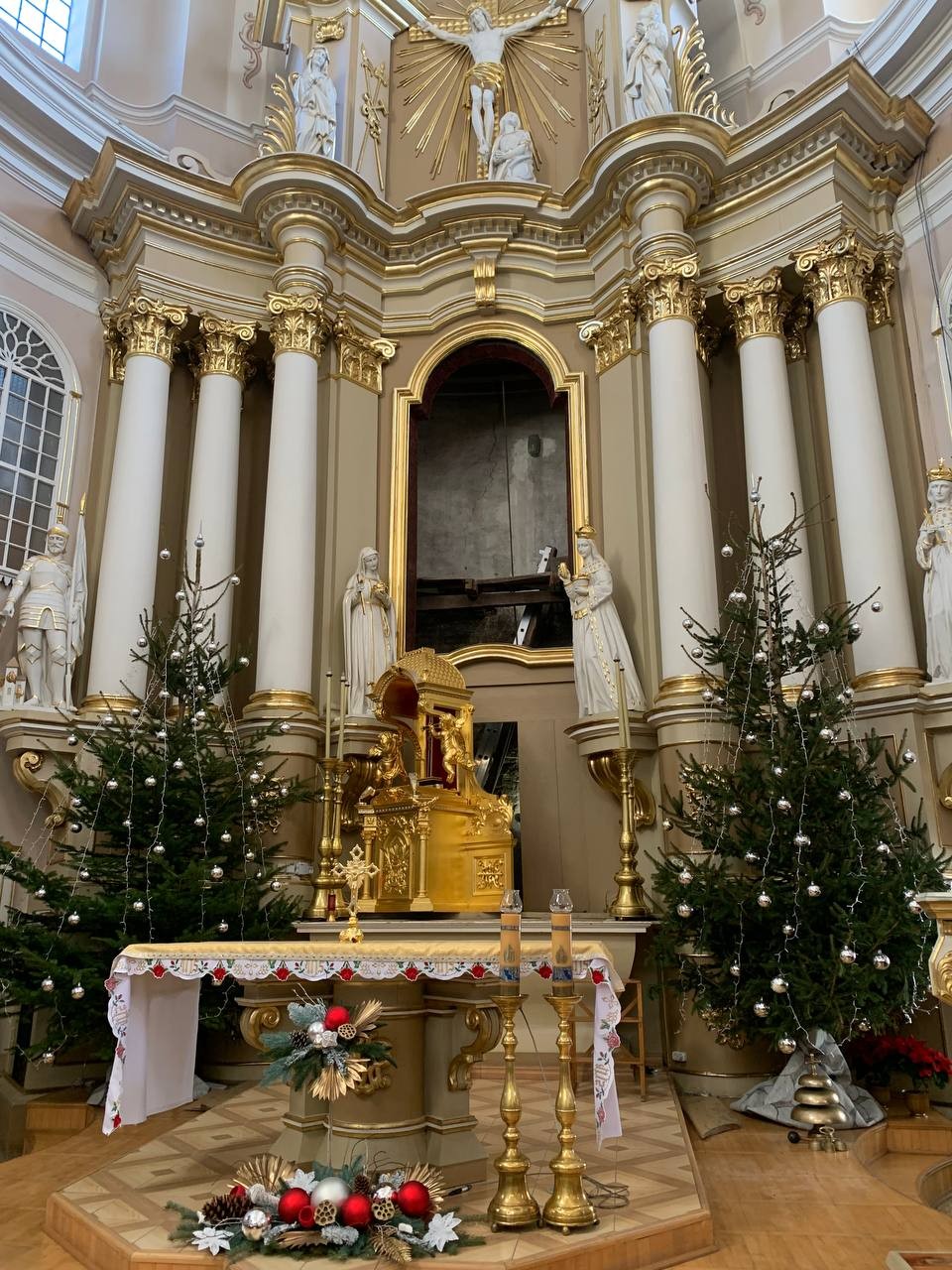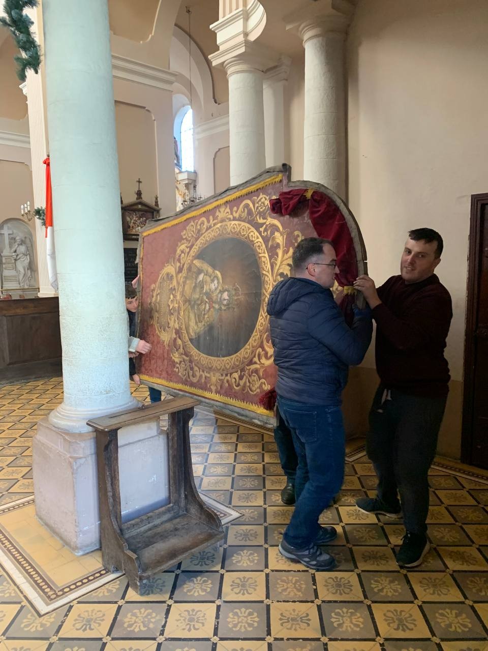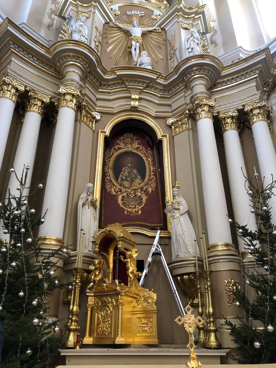 28 грудня після ранкової Святої Меси наші парафіяни - за що їм дякуємо, допомогли зняти з головного вівтаря образ Матері Божої, який перевезли на відновлення .