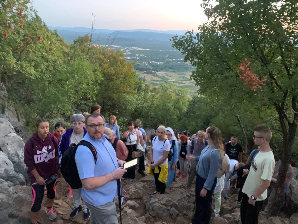 Подорож розпочалася Святою Месою о п'ятій ранку, під час котрої ми просили Бога про щасливу подорож і добрі плоди паломництва. Після того, як забрали останніх людей зі Львова, ми вирушили в напрямку кордону з Угорщиною, на якому провели майже десять годин. Під час довгих годин, проведених в автобусі, нам товаришувала молитва, спів та конференції, що вводили в історію об'явлень та місць пов'язаних з Меджугор’є.