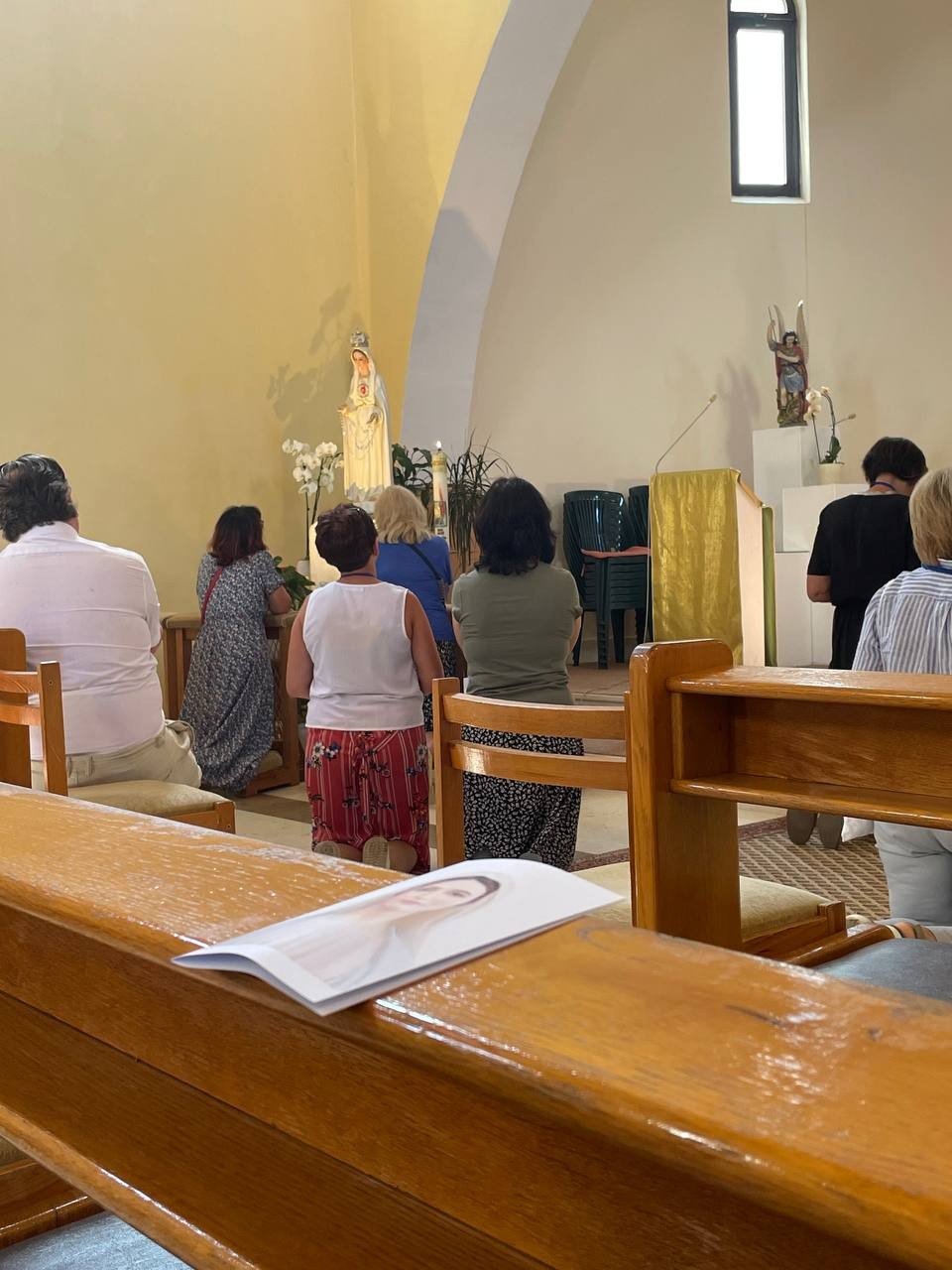 У неділю після обіду ми прибули на місце. Після поселення, обіду та короткого відпочинку ми пішли до церкви Святого Якова, щоб вклонитися Ісусу та Його Матері – Цариці Миру. Потім ми швиденько пройшли територією довкола храму і взяли участь у так званій програмі вечірній.