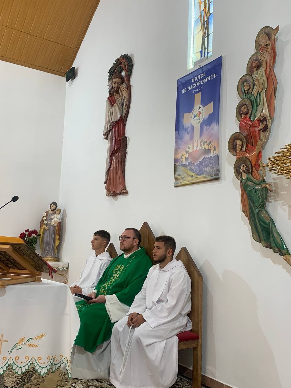Коли ми прибули до України, незабаром після перетину кордону ми доїхали до церкви Доброго Пастиря в Ключарках, де взяли участь у недільній Євхаристії. До Золочева ми прибули близько 15:00.