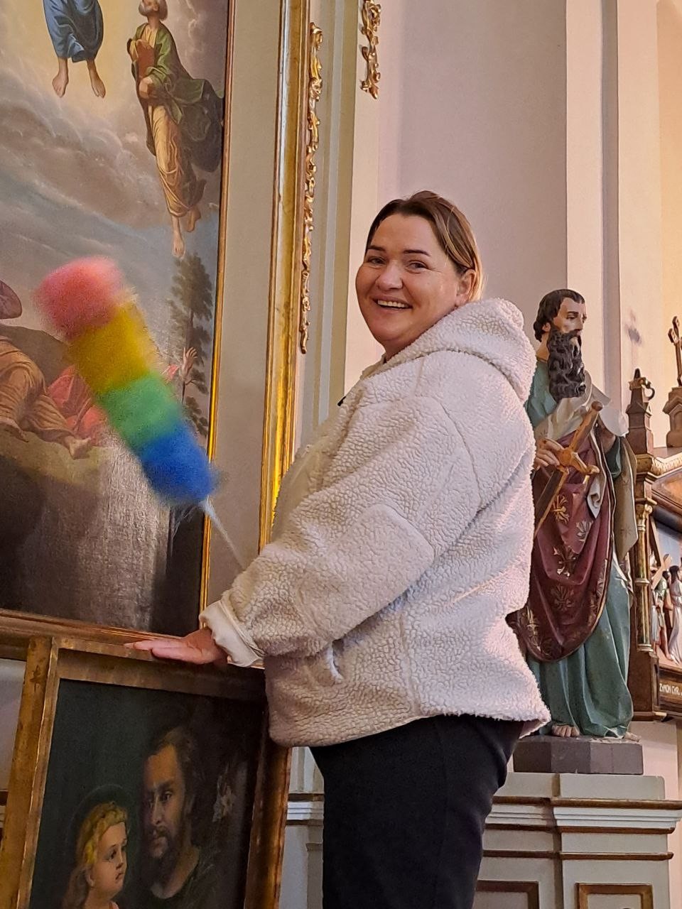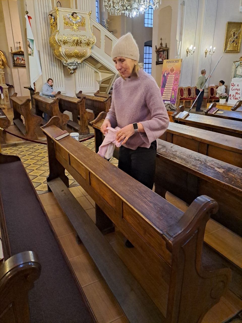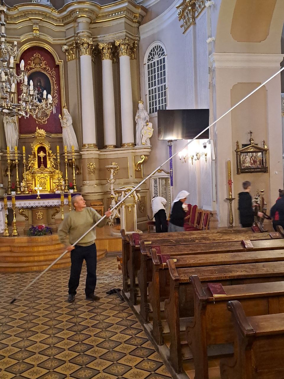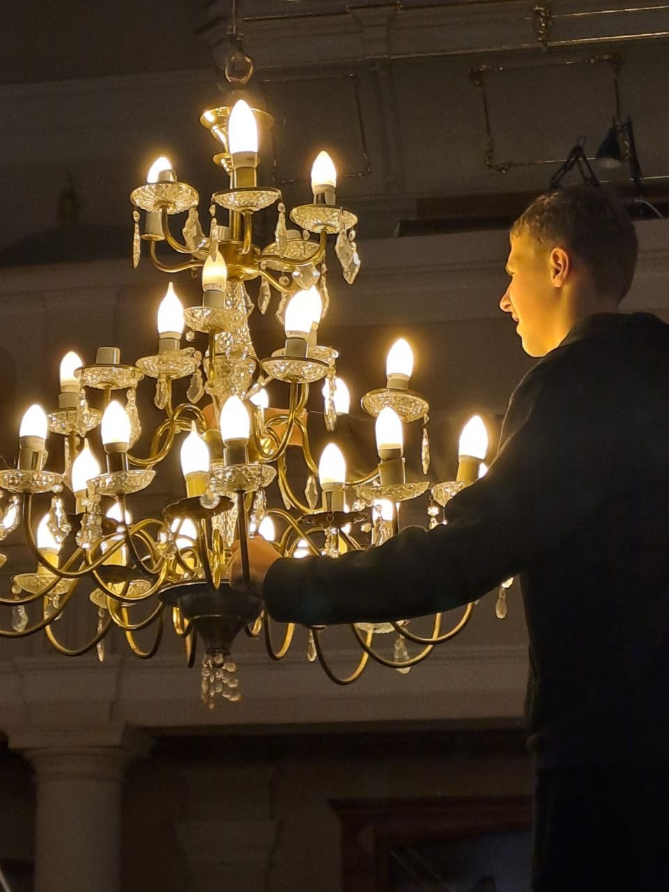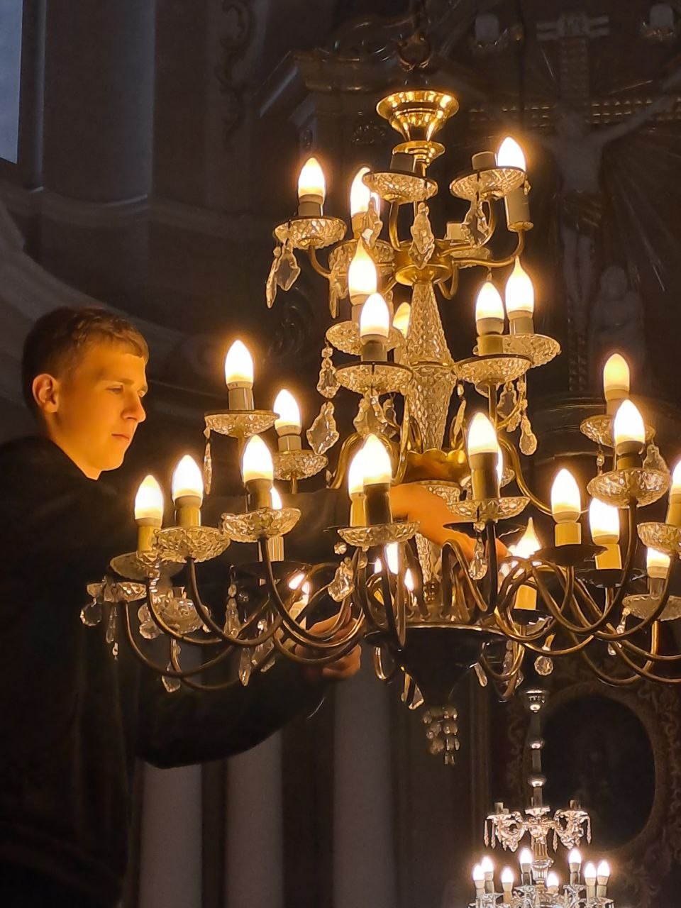 Варто підкреслити роботу Адама і Павла, які привели впорядокували лампочки у всіх люстрах і кінкетах в костелі.