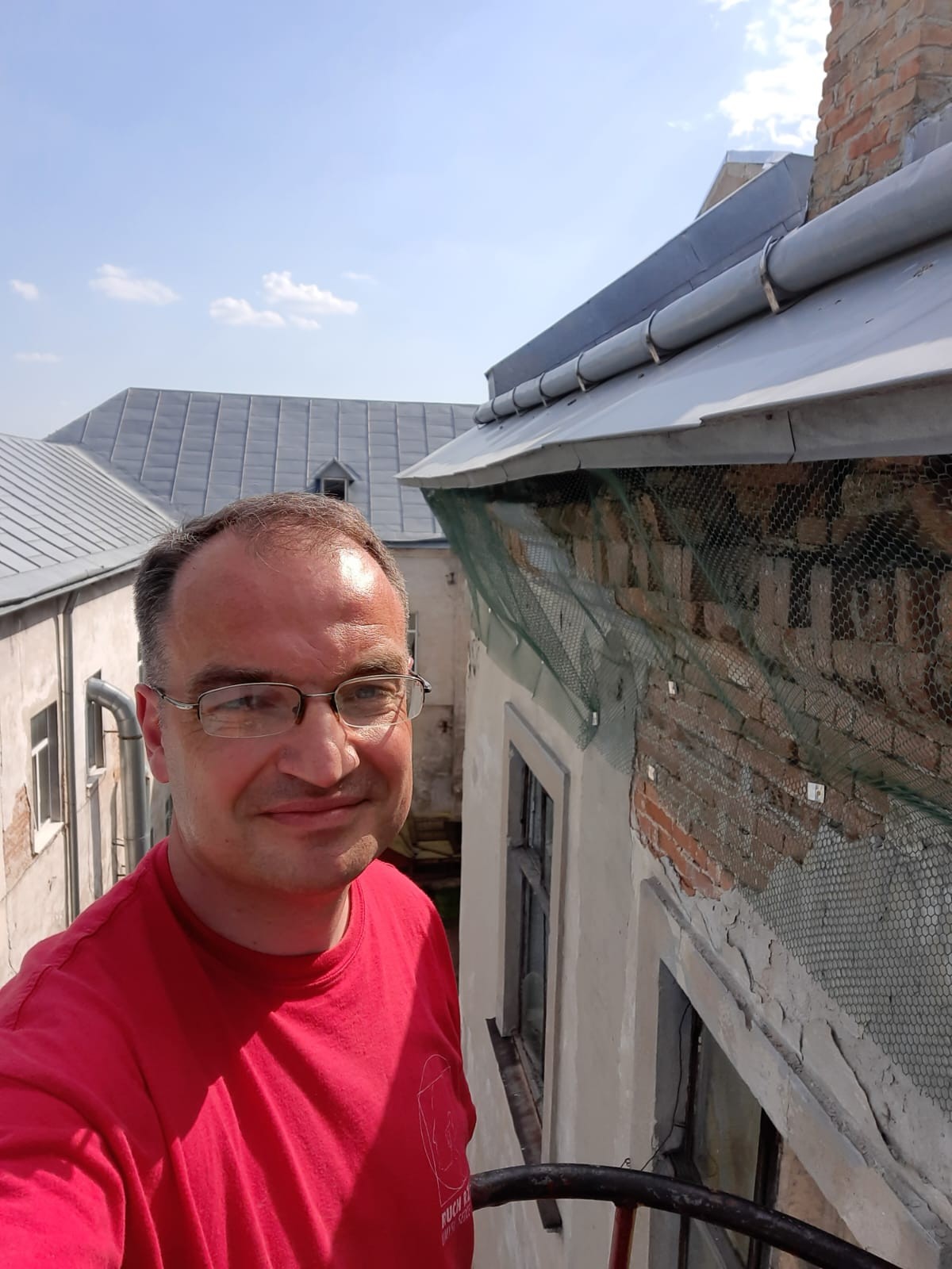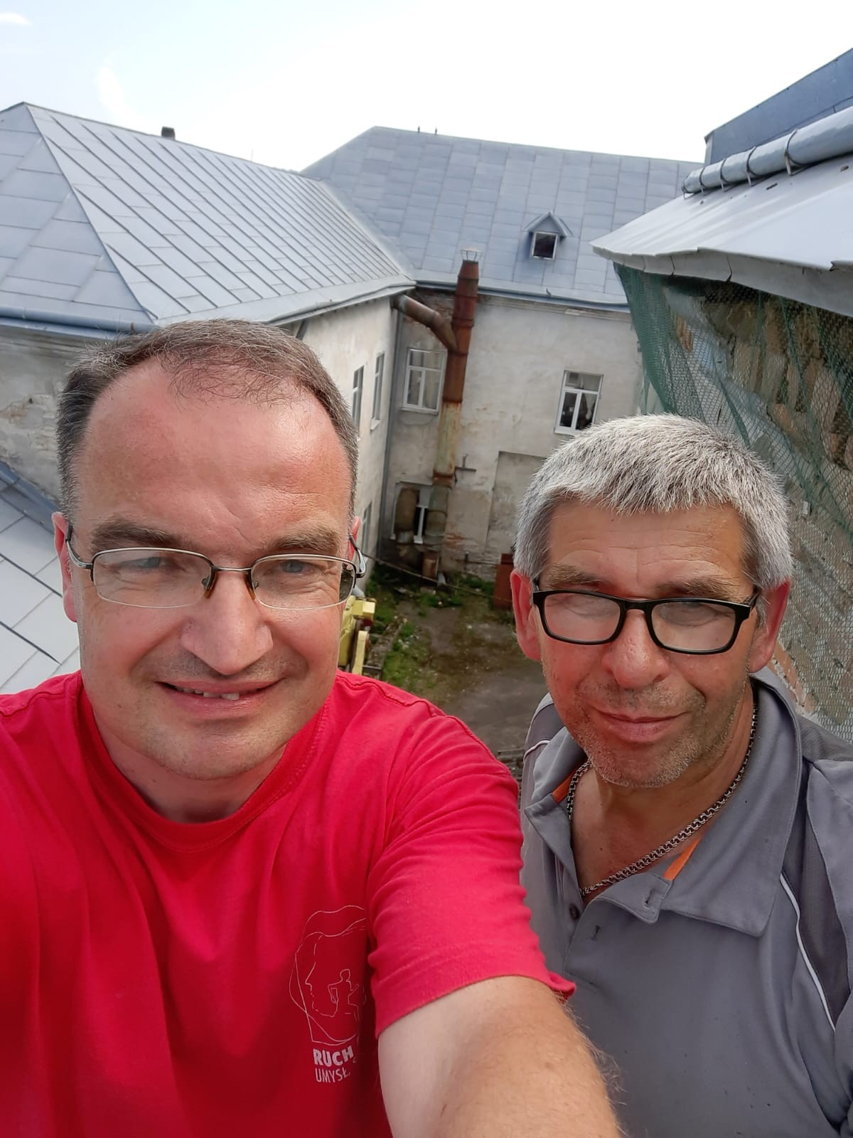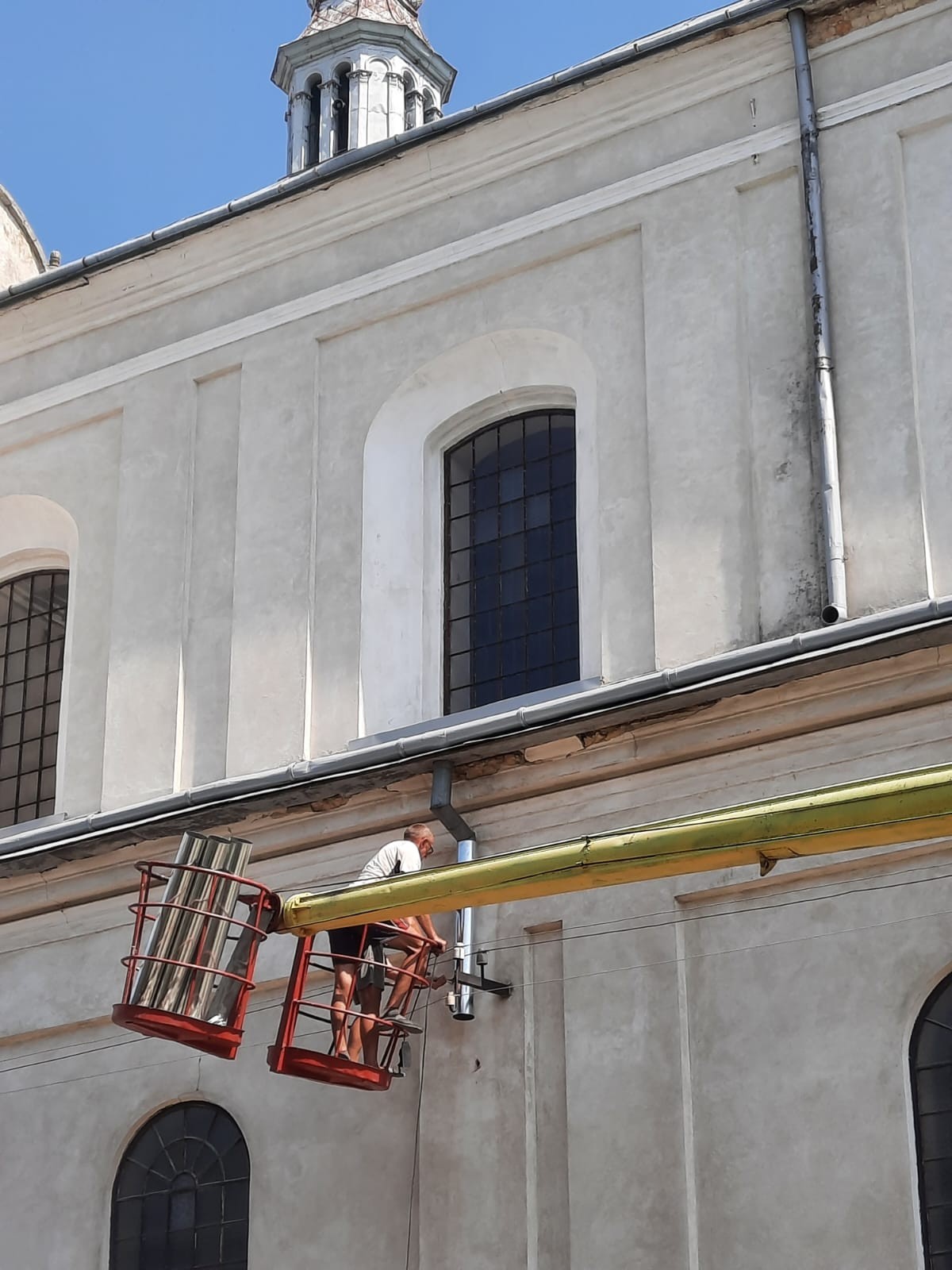 Ojciec Proboszcz razem z panem Wasylem Ilczyną zawiesili siatki chroniące przed gołębiami, które wlatują pod dach klasztoru i nie sprzątają po sobie :)