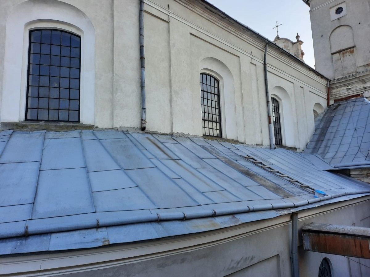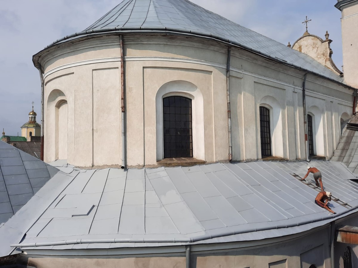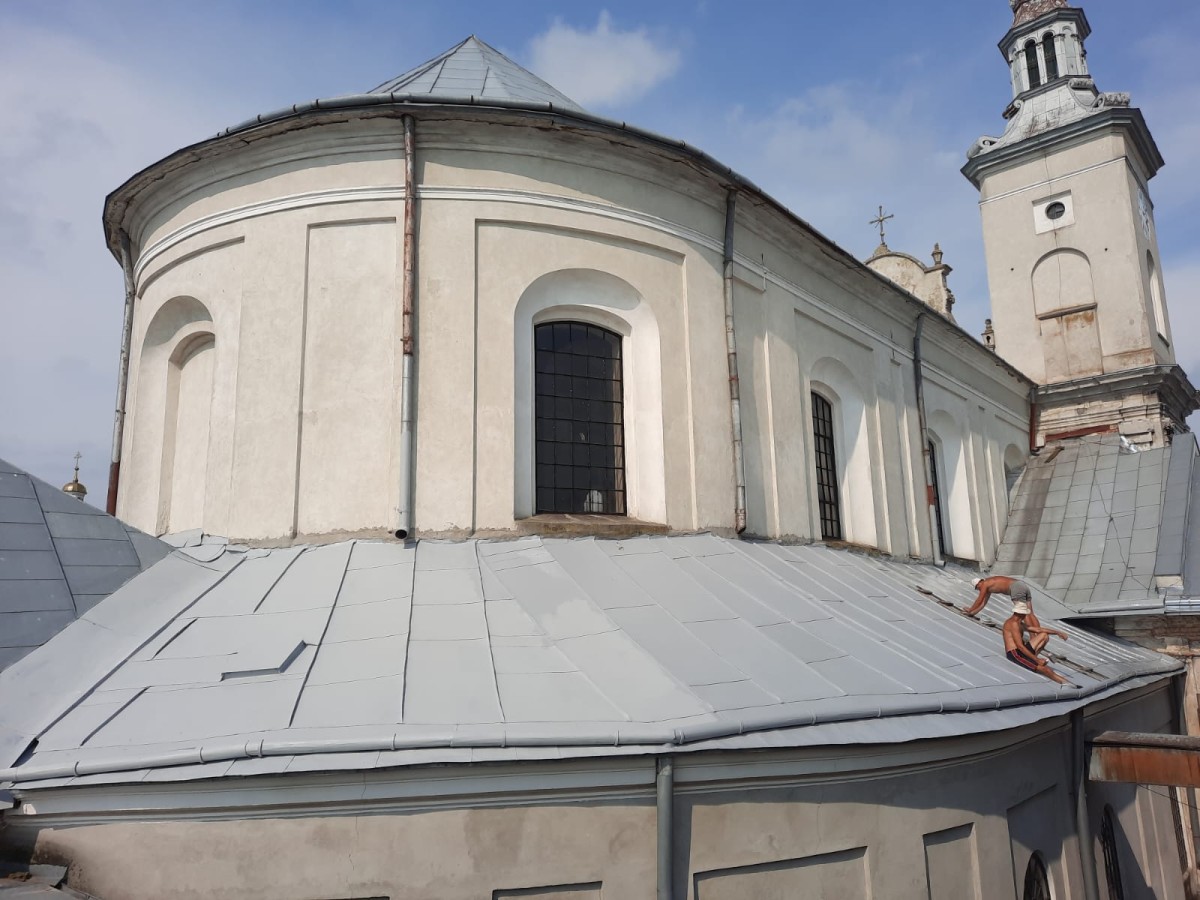 Минулого тижня вдалося нам завершити працю – чищення та малювання даху над бічними навами нашого храму. Також змінено ринви на Костелі з боку вулиці Героїв УПА.