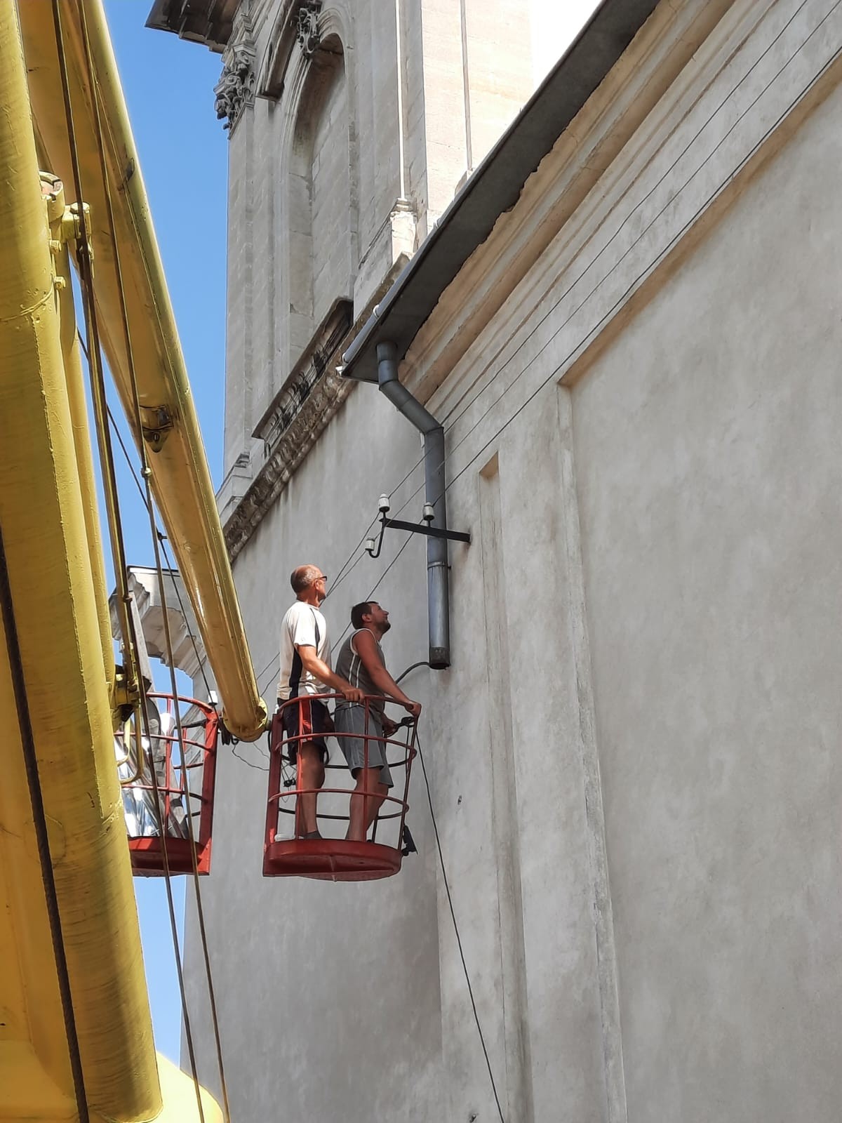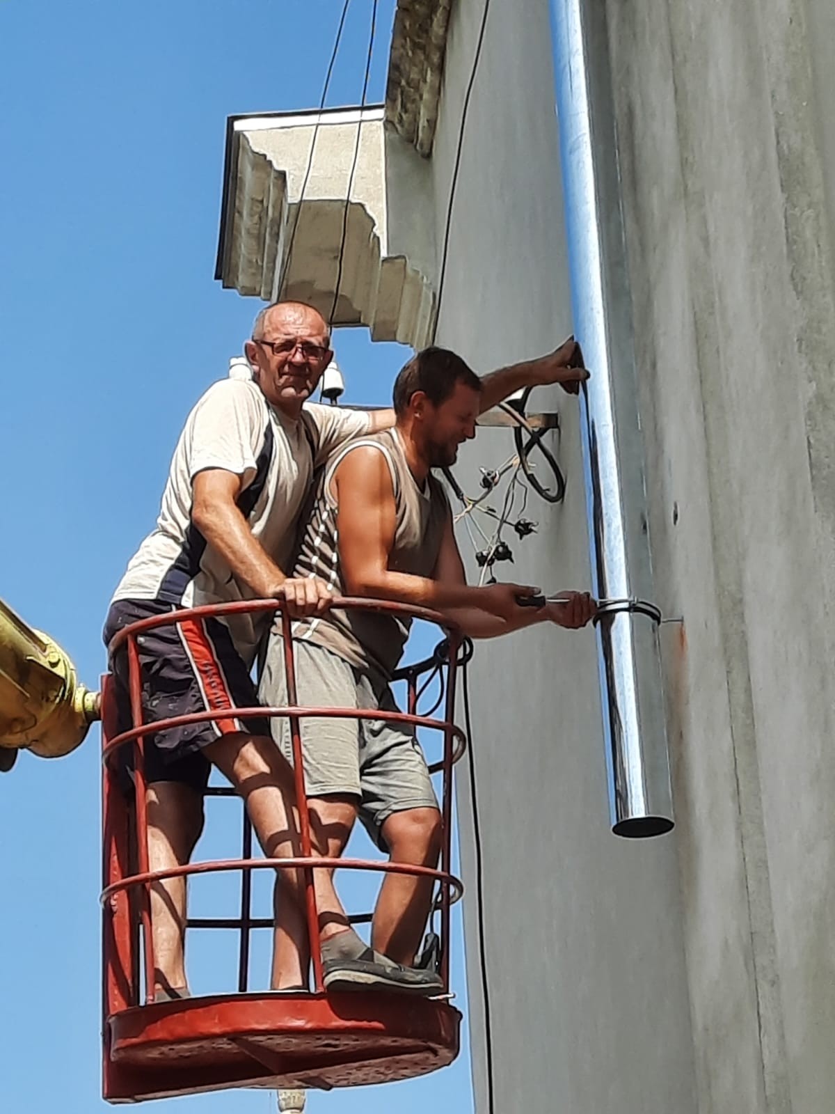 Отець Настоятель разом із п. Васильом Ільчиною розвісили сітки від голубів, які літають під дахом монастиря і не прибирають після себе :)